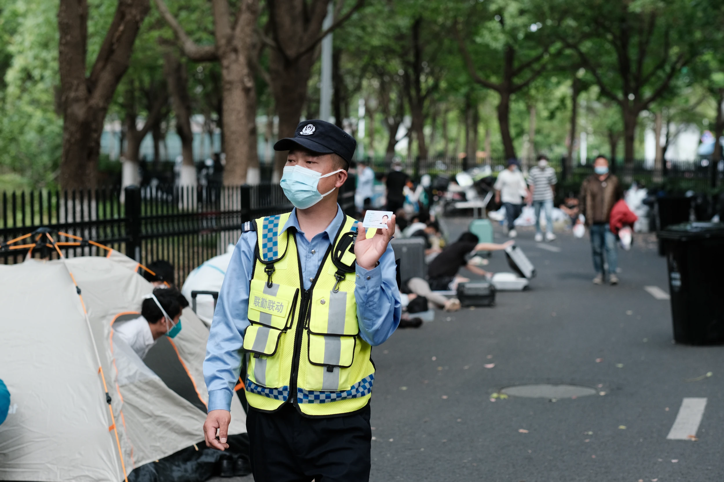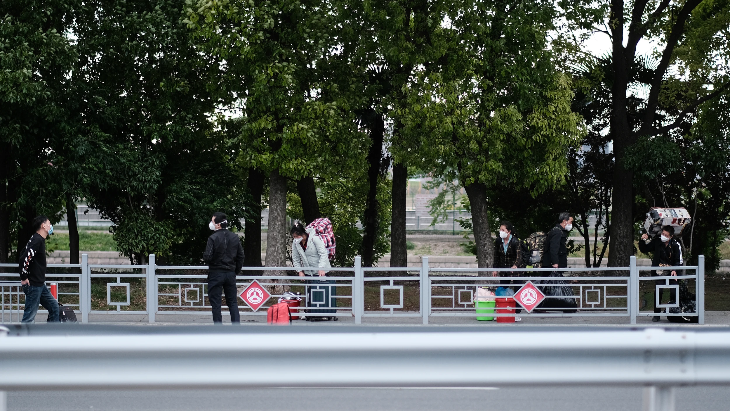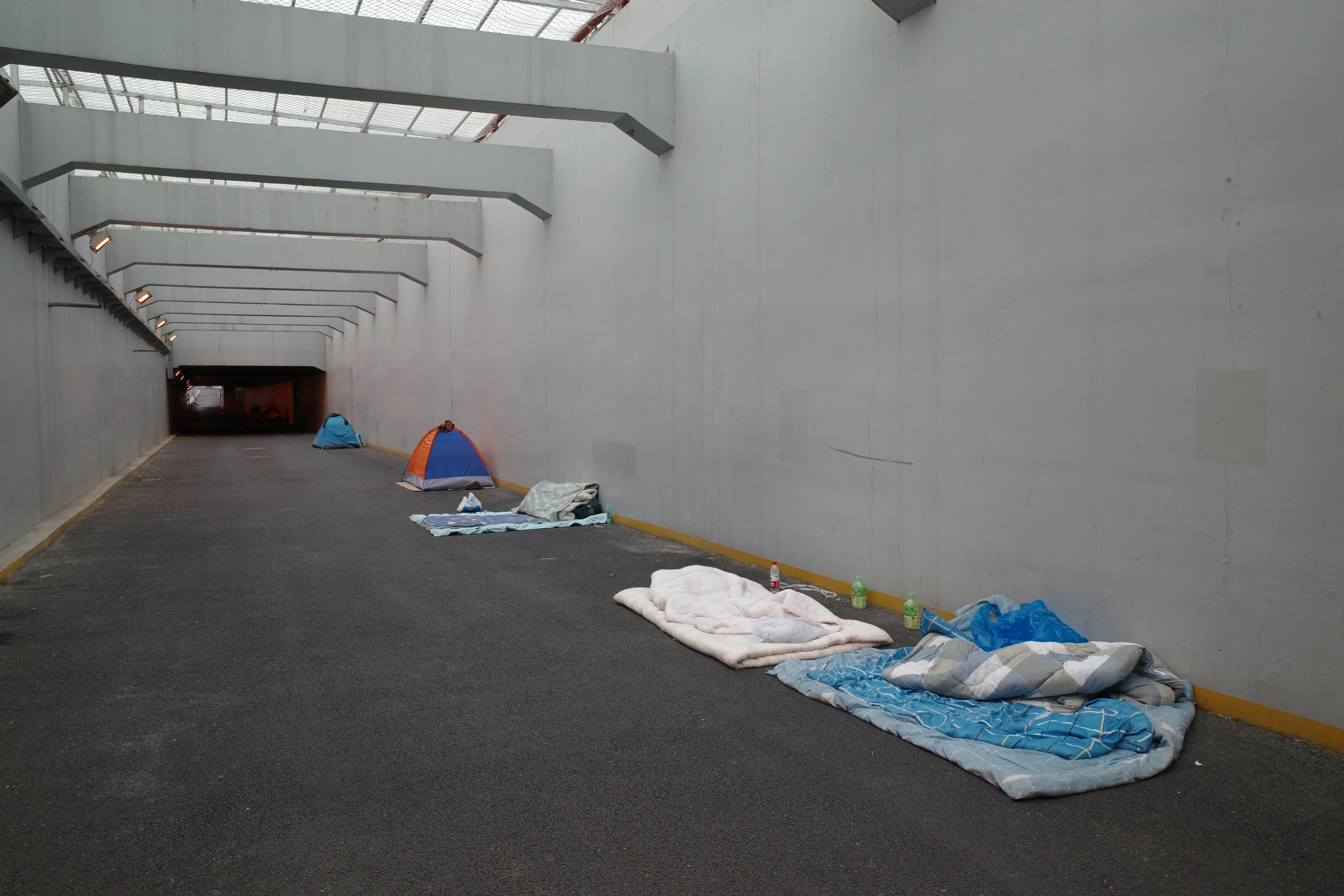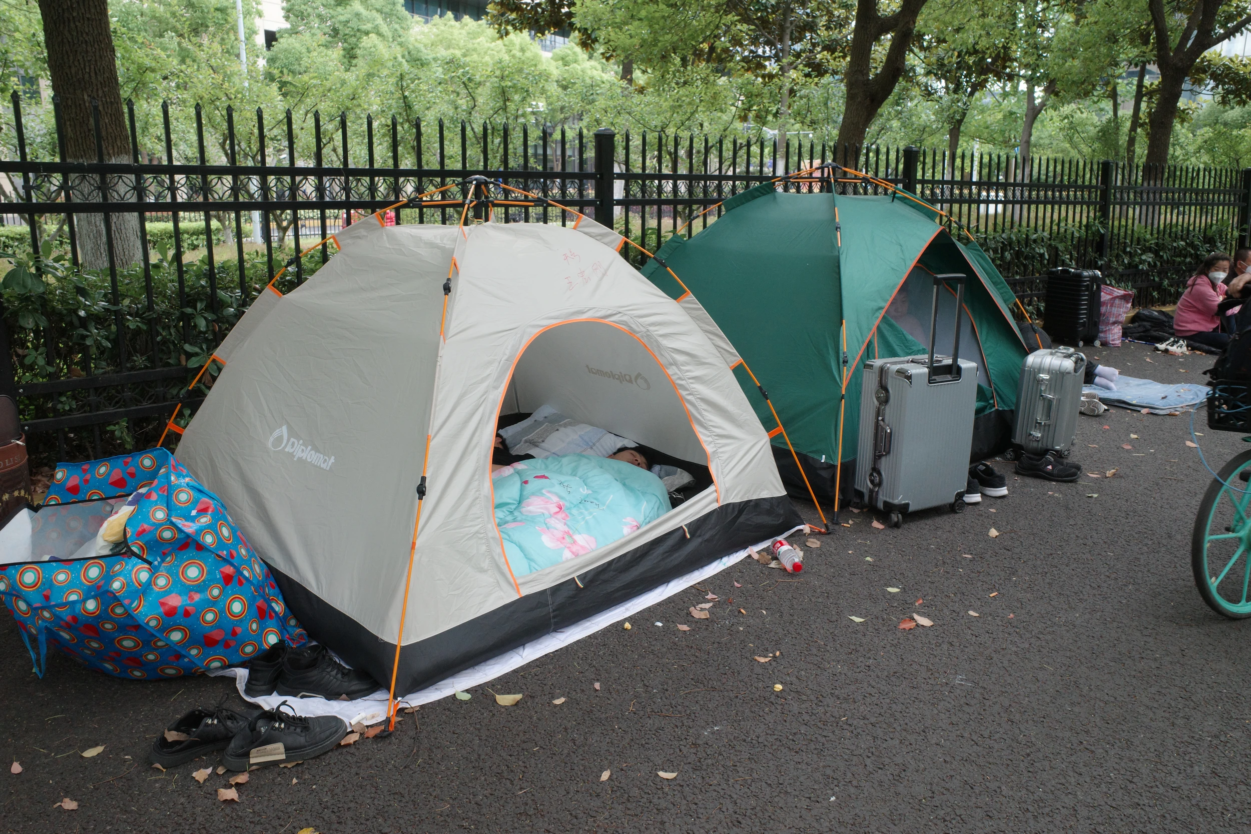 因为没法再回到地铁站,于是骑车去三站之外乘车。路上遇到了另外一些滞留露营的人,祝他们都早日回家!